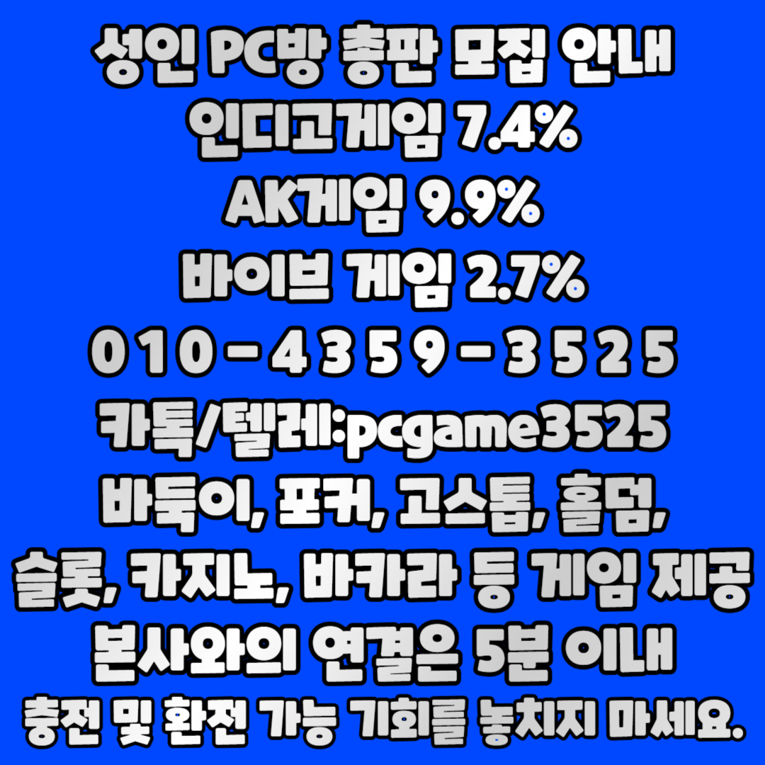 √인디오게임 다이야/골드/실버 √바이브게임√ 2.7% 총판/매장 √AK게임√ 9.9% 정회원/준카톡/텔레 가능회원 본사 직통 24시 콜센터 운영0000 |