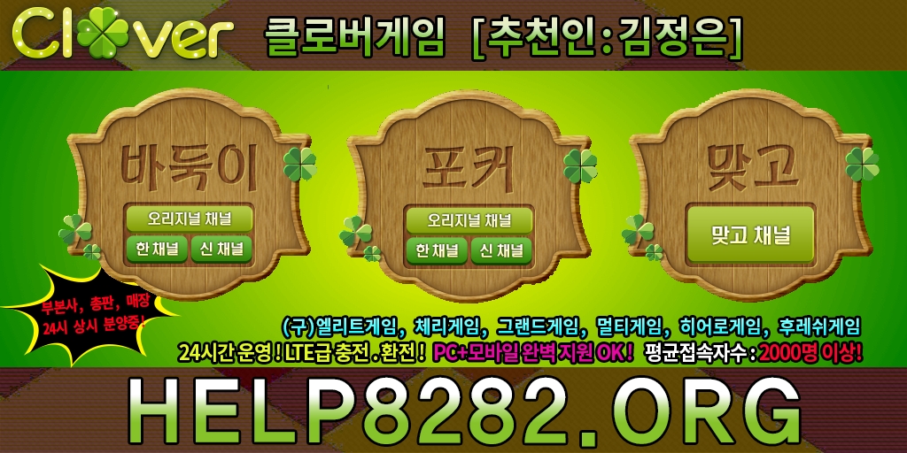| 2020년 (뉴) 클 로 버 게 임"【 HELP8282.CO.KR 】【바둑이】【맞고】【포커】【【섯다】【PC+모바일OK!】 국내 최대 메이저 1등! 온, 오프라인, 바,둑,이 + 포,카 + 맞,고 + 3000명 동시접속자! (현재) 클 로 버 게 임 (구)배터리게임, 체리게임, 루비게임으로 대한민국 최고게임! 입장방~ 500방, 1000방, 2000방, 5000방, 10000까지 운영중! 3분설치, 3분접속, 3분 환.전, 3분 충.전, 지금 바 | 2020년 (뉴) 클 로 버 게 임" | 2020-04-02 | 조회:1354 | |