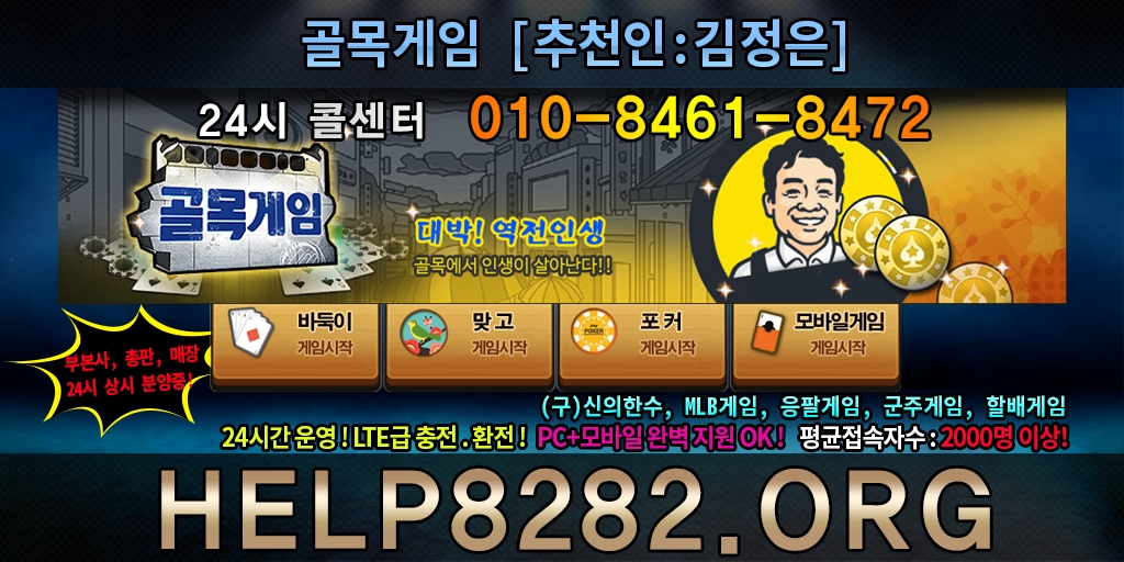 | 2020년 (뉴) 골 목 게 임"【 HELP8282.CO.NET 】【바둑이】【맞고】【포커】【【섯다】【PC+모바일OK!】 국내 최대 메이저 1등! 온, 오프라인, 바,둑,이 + 포,카 + 맞,고 + 3000명 동시접속자! (구버전, 해적게임 / 신의한수 / MLB게임 / 응팔게임 / 군주게임 / 올림픽게임 / 할배게임 ) 엔티금액 / 500방, 1000방, 2000방, 5000방, 10000 까지 돌아가고 있습니다^^ 3분설치, 3분접속, 3분 | ccscs | 2020-06-17 | 조회:1319 | |